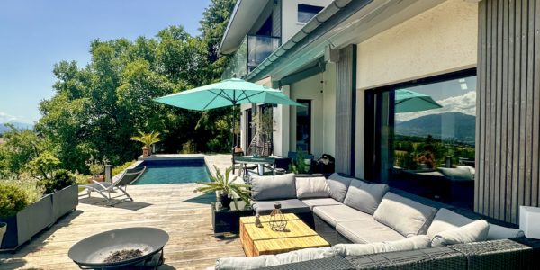 Maison individuelle avec vue panoramique sur le lac d’Annecy et les montagnes, à vendre sur l’axe Annecy-Genève